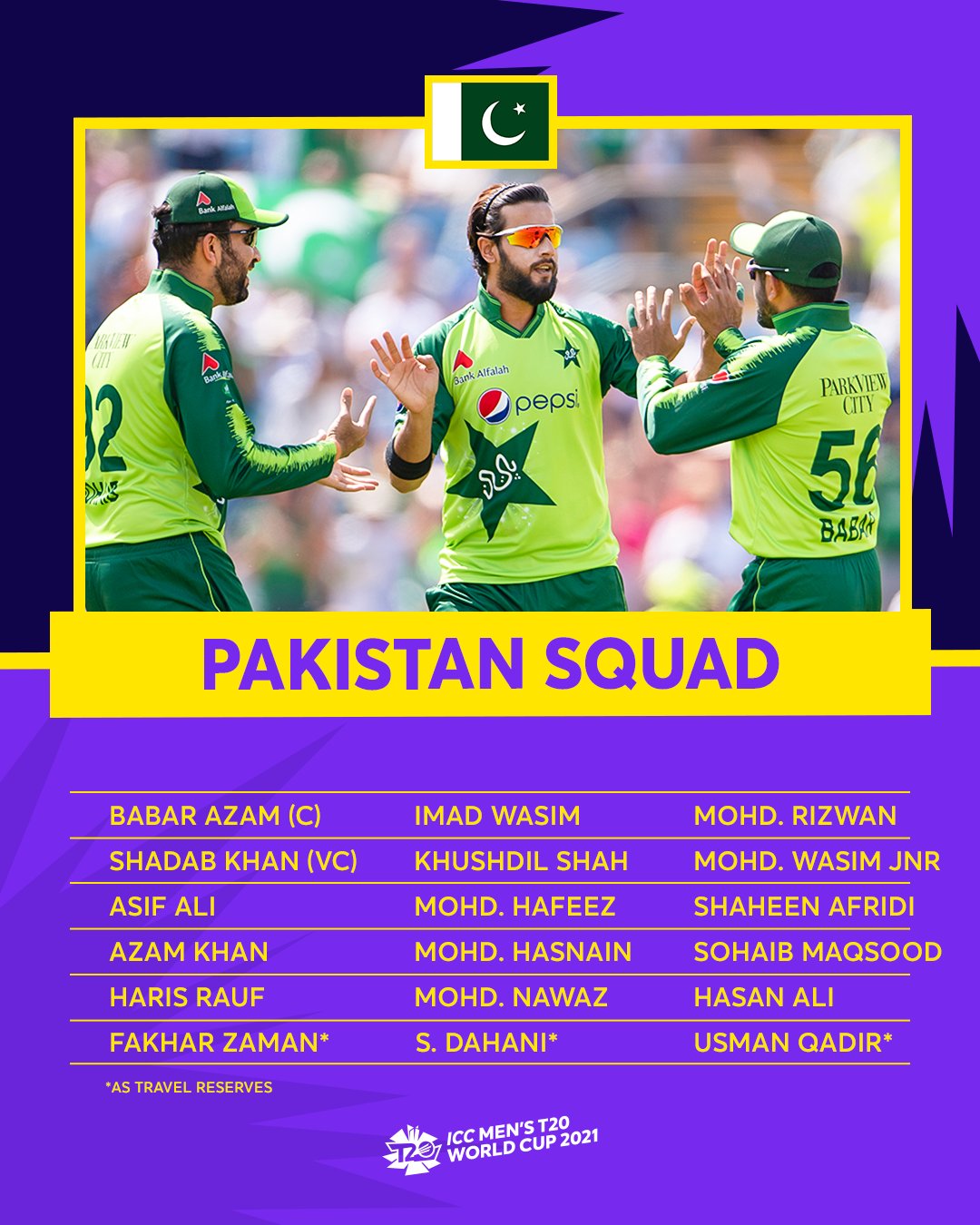 Icc On Twitter Pakistan Have Named Their Squad For The Icc Men S T20worldcup 2021 Details Https T Co S3vpjfkbuc